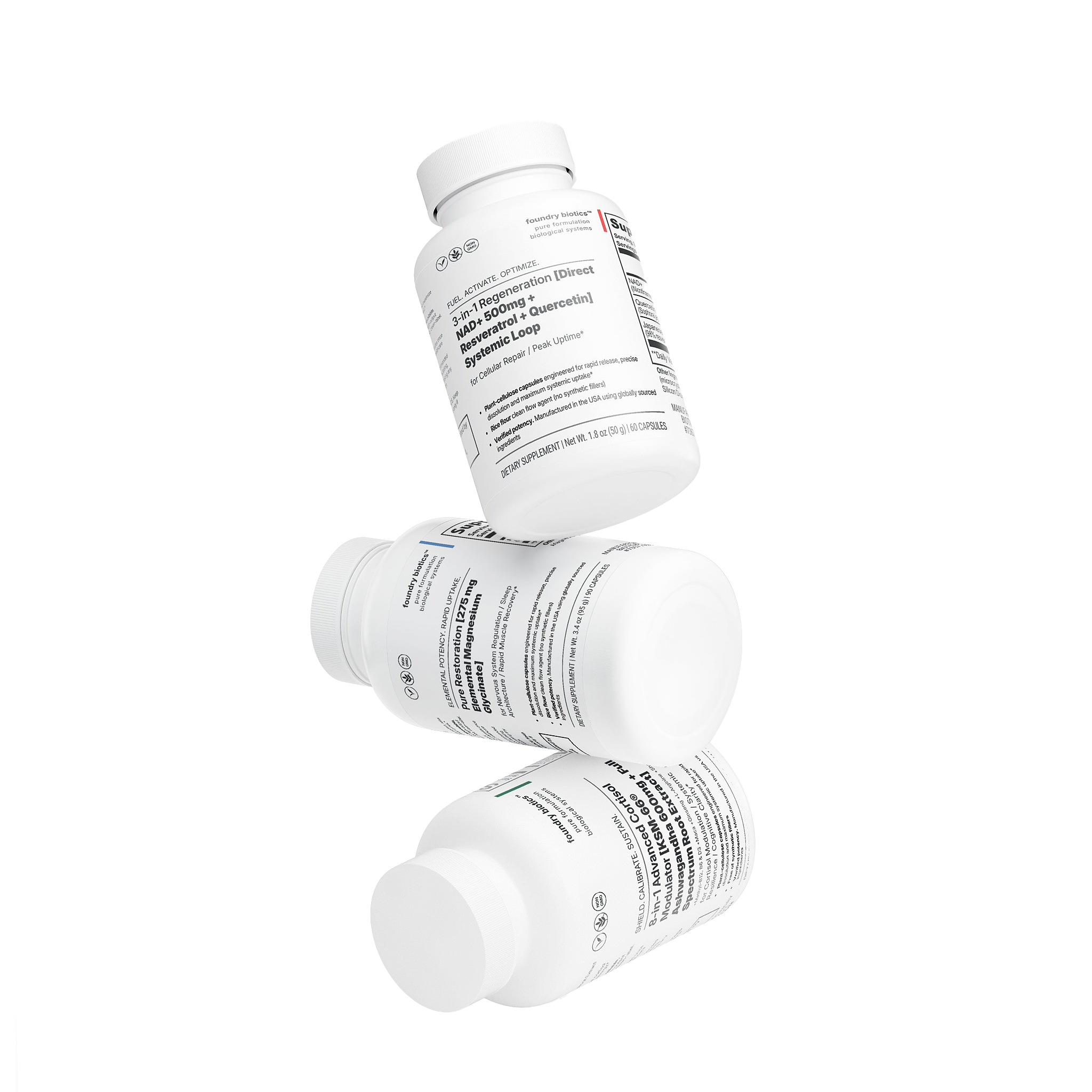 foundry biotics™ More than isolated ingredients - we formulate nutrient combinations designed for consistency - a precise daily dose of synergistic, clean-label and science-informed ingredients with verified potency in bioavailable form.